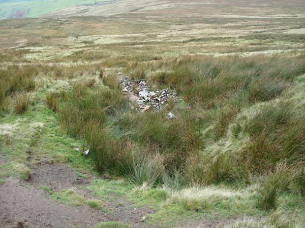 The majority of the remaining wreckage on the site is in the impact crater, as a stream now runs through the crater much of the wreckage is now in a poor condition.