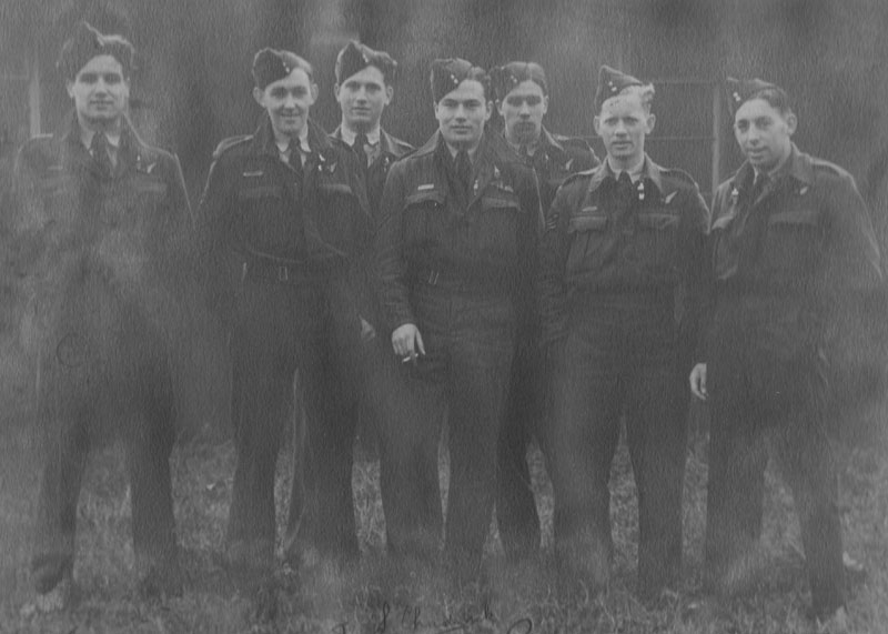 This photograph shows the crew of Halifax DT578 when it struck Great Whernside. The original copy of this owned by the son of the navigator Mr David Robson, it shows signatures of the crew at the foot of the page and these are now very faded. I believe those pictured to be are (left to right)... Martin, Stabler, Vincent, Chadwick, Aitken, Robson & Robinson. My thanks to Mr David Robson for the photograph.