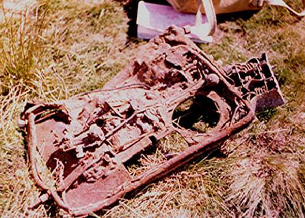 The remains of the aircraft's bomb sight computer dug up by Graham Sharpe in 1972 and photographed by Jim Rutland in 1974 but the whereabouts of it today is not known.