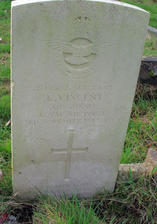Air Gunner - Sgt Kenneth Vincent RAFVR (1819902), aged 19, of Wednesfield. Buried Wednesfield Churchyard, Staffordshire.