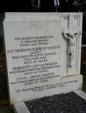 Wireless Operator / Air Gunner - Sgt Norman Sebright Martin RAF (1600285), aged 19, of ? Buried East Finchley Cemetery, Middlesex.