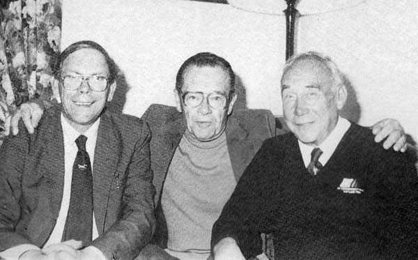 Left to right: historian Brian Lunn, pilot Laurie Bertrand and navigator Stan Langley in the York Arms pub, Ramsgill.