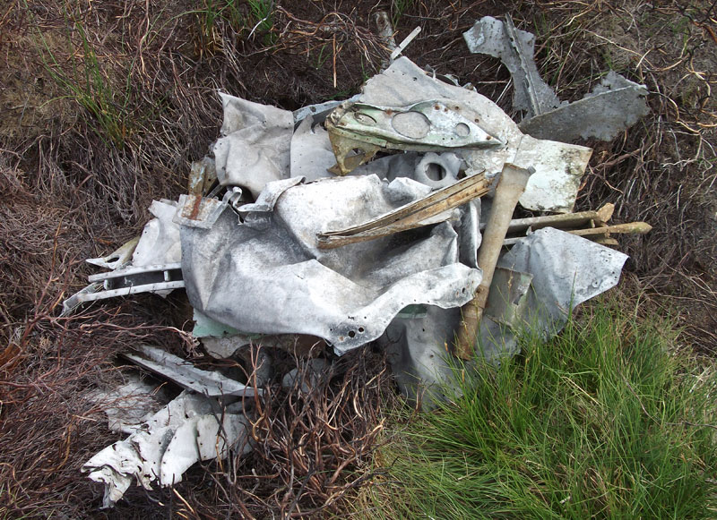 I first visited the area of this incident in February 2006, the larger pieces of wreckage had been collected together and dumped in a series of depressions on the moor. I returned to re-photograph these a couple of years later. In July 2013 I returned to do the same again on a sunny day but accessed it from a different direction and found more of a wreckage trail away from these collected areas.