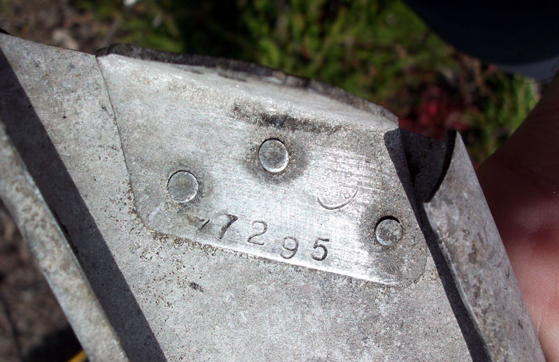 These two pieces were found about five metres apart but when offered up to each other they were once one section of metal. The part number shown below was found on this part.