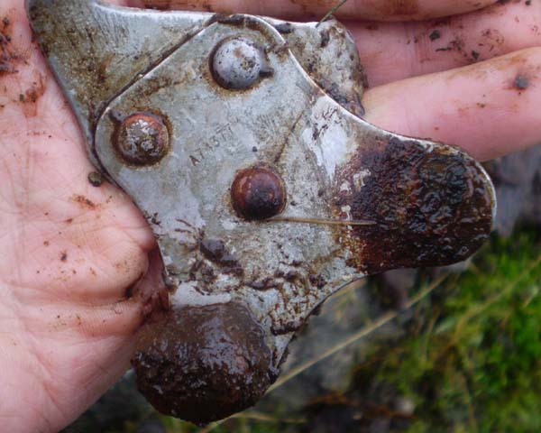 This piece is exactly the same as one I found at one of the Hurricanes which crashed on Scafell, in the Lake Disrict. As a result this confirmed the site location.