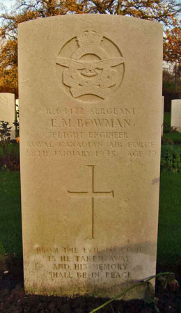 Spare Flight Engineer - Sgt Edward Max Bowman RCAF (R/64172), aged 27, of Kitchener, Ontario, Canada. Buried Harrogate Stonefall Cemetery, Yorkshire.