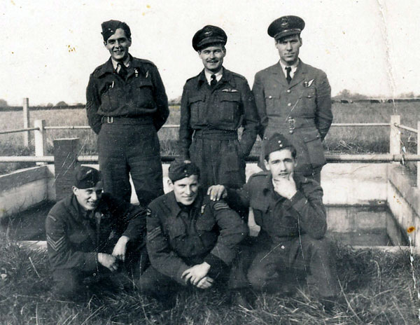Many who were in Halifax LL576 when it crashed near Pateley Bridge in 1945. Sadly all their names are not yet known. Back row, ?, Hustwitt, Stevens.