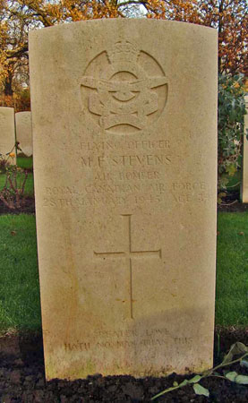 Bomb Aimer - F/O Maurice Frederick Stevens RCAF (J/41771), aged 34. of Overbrook, Ontario, Canada. Buried Harrogate Stonefall Cemetery, Yorkshire.