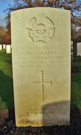 Wireless Operator / Air Gunner - F/Sgt William Charles Watts RCAF (R/223796), aged 19, of Mimico, Ontario, Canada. Buried Harrogate Stonefall Cemetery, Yorkshire.