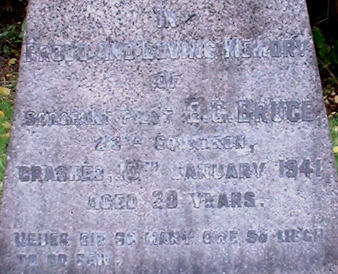 Pilot - Sgt Eric Gordon Bruce RAFVR (748618), aged 20. Buried West Acklam Churchyard, Middlesbrough, Yorkshire.