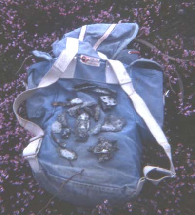 Mr Graham Sharpe located this crash site back in 1979 and this photograph shows the fragments he found which probably shows just how little of the aircraft was left back then.