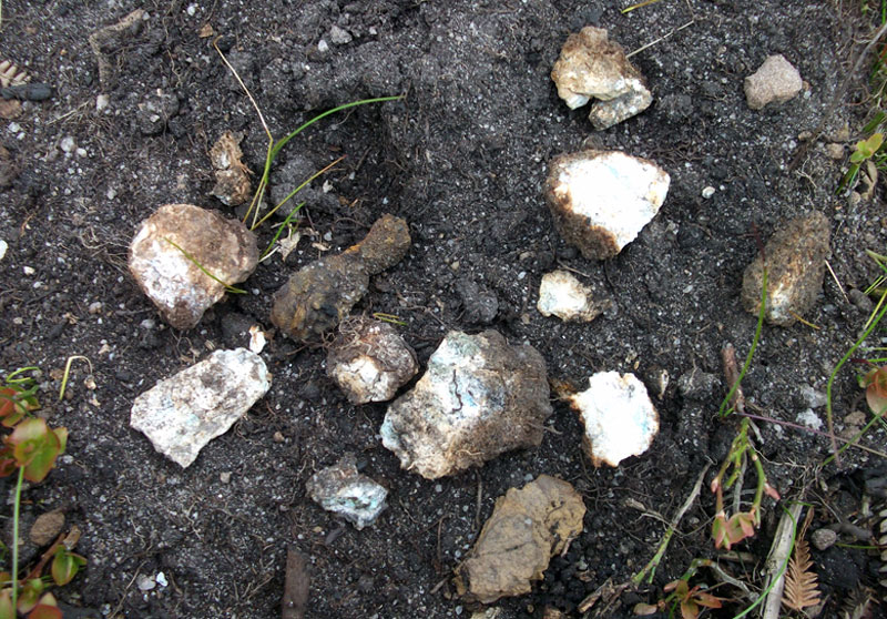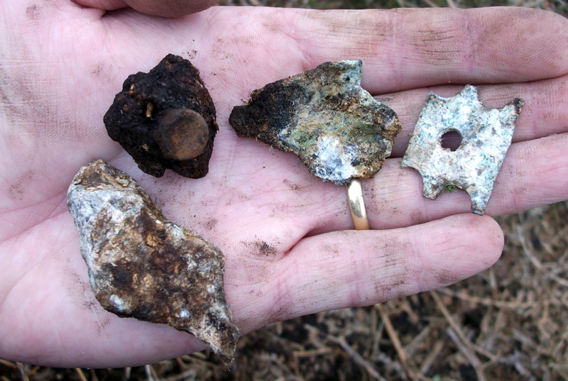 Similiar tiny fragments of the aircraft remained at the crash site when I visited in May 2014. Many of my finds were located on top of mole hills.