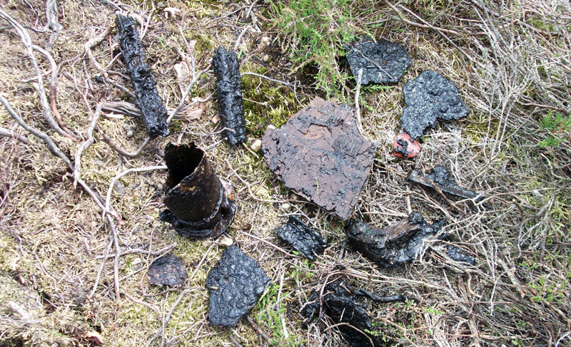 I visited the crash site with Alan Clark, Philip Smith, Mark Sheldon, Jim Corbett and Daniel Corbett in June 2014 locating small fragments of the aircraft on Stainmore with enough items to identify the aircraft. Below are some photographs of the items we located.
