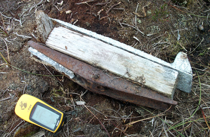 What would appear to be a Lockheed hydraulic hand pump (above) located in the cockpit next to the pilot's left leg and a fragment of the airframe (below).