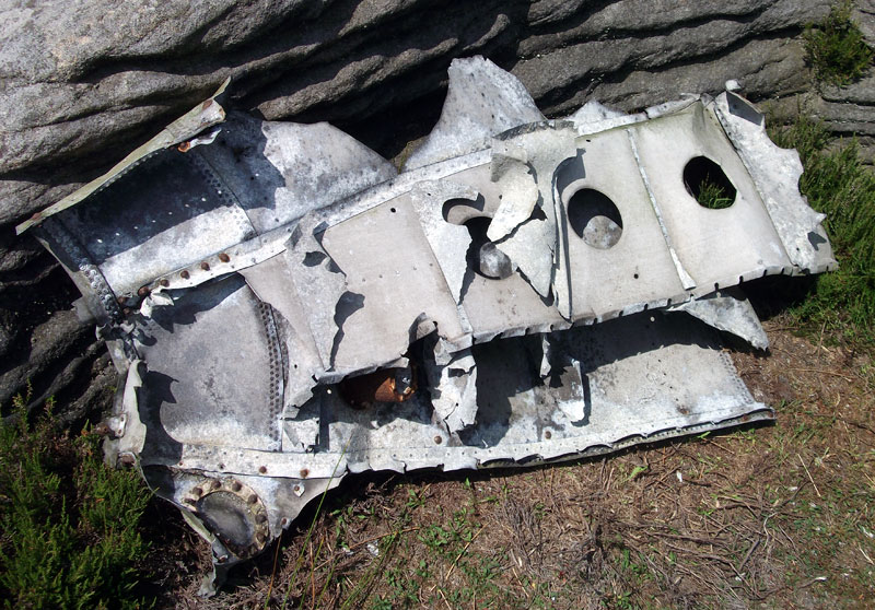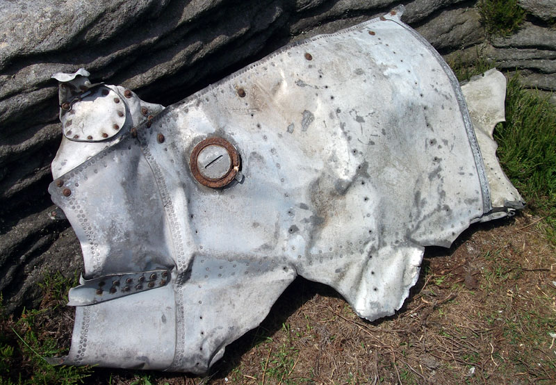 I located the area of the crash site in February 2006 though I found very little, only a few scraps of metal appear to bear witness to the accident. After this first visit I obtained a copy of newspaper reports documenting this incident, they refer to a large impact crater being created and wreckage being scattered over a wide area. Either this crater had been filled in or on my first visit I had not located the actual crash site but just part of a wreckage scatter. I returned to the crash site on the weekend prior to the 60th anniversary of the accident and the area where I discovered a few scraps of the aircraft in 2006. This area was now covered in deep heather and I failed to find anything else. I attempted to find where a filled-on crater may have been on the moor going on the theory that it would have been filled in with stone (probably the underlaying bedrock from a local moorland quarry), if it was not topped off with peat it would be doubtful if the natural plant life would recover. I did not find any such area.