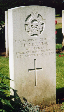 Observer - F/Sgt Joseph Henri Alphonse Beliveau RCAF (R/77189), aged 30. Buried Ripon Cemetery, North Yorkshire.