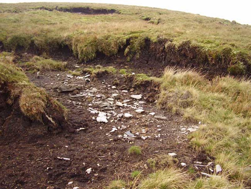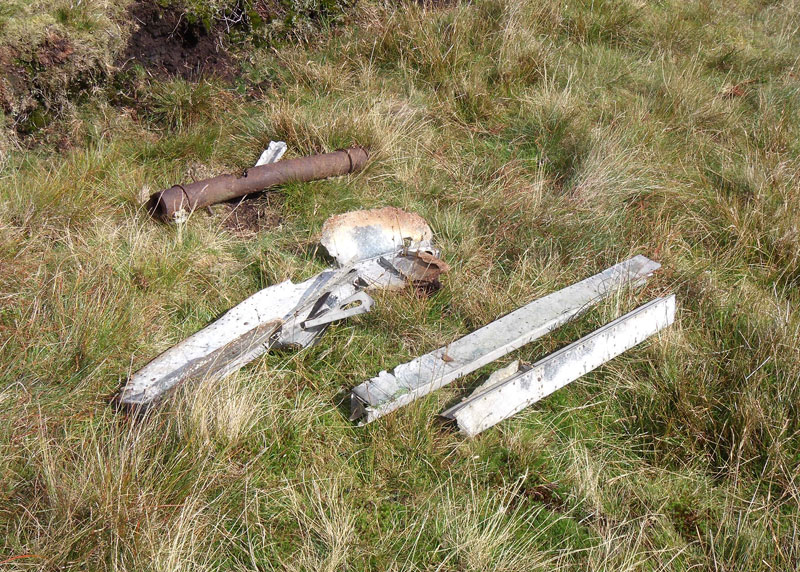 The largest pieces of the aircraft still at the crash site found on the surface in a boggy area just below where the aircraft burnt out.