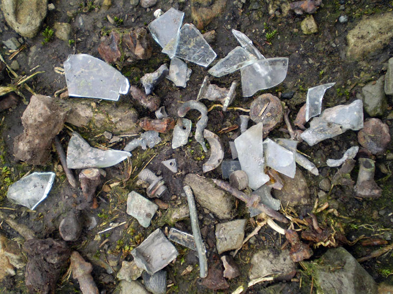 a few tiny aircraft fragments where the aircraft either caught fire after the crash or where the RAF set fire to the wreckage to dispose of it.