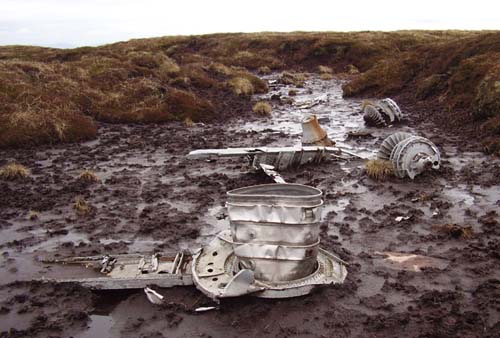 located five days later by a gamekeeper who contacted the authorities. The direction the aircraft was heading can be seen today by a