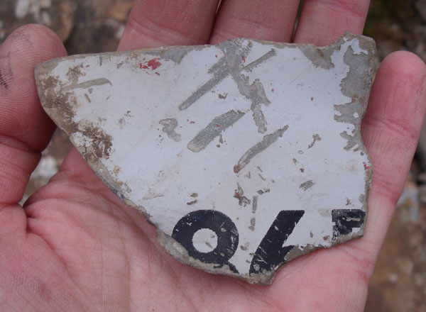 A piece of the aircraft with the numbering "865", I am not sure where this was situated on the aircraft yet.