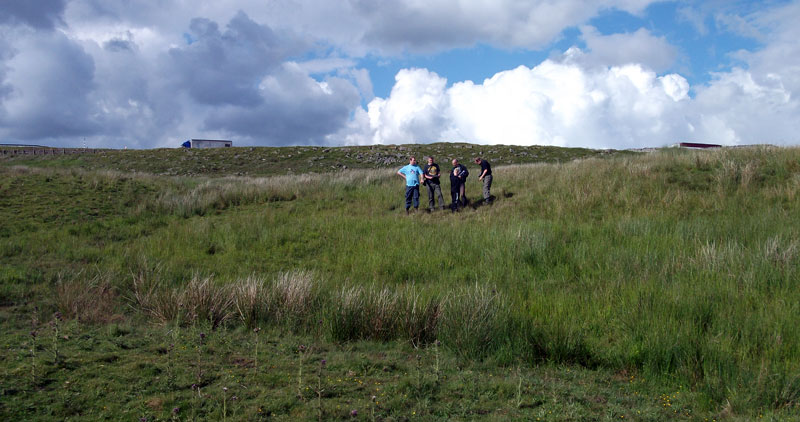 The photograph above shows the general area of the crash site on Stainmore which just inside the Durham side of the border and the site is marked by a good selection of aviation historians on the photograph below, the closeness of the crash site to the A66 marked by the lorries beyond.
