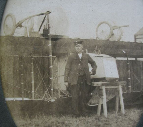 On 25th July 1915 this aeroplane was being flown along the east coast of Yorkshire when the engine failed. The pilot made a forced landing near Robin Hoods Bay but the landing was not too successful, it overturned but the pilot survived. It was being used by the RNAS Redcar Home Defence Flight at the time of the incident. The photograph shown above is this aeroplane seen crashed at Robin Hoods Bay. A building is just visible towards the top right side of the photograph which may help pinpoint the location one day. My thanks to Mr Ben Wedgewood for his help in researching this incident and for the copy of the photograph.