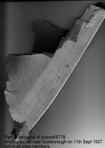 Anson K8778 was built to contract 497338/36 by A.V. Roe Ltd at Woodford and was allotted to 233 Squadron on 20th May 1937. It was taken on charge by 233 Squadron at Thornaby on 25th May 1937. The aircraft sustained Cat.W/FA damage as a result of the accident on 11th September 1937 and was struck off charge on 17th September 1937 with total flying time of 93.40 hours.