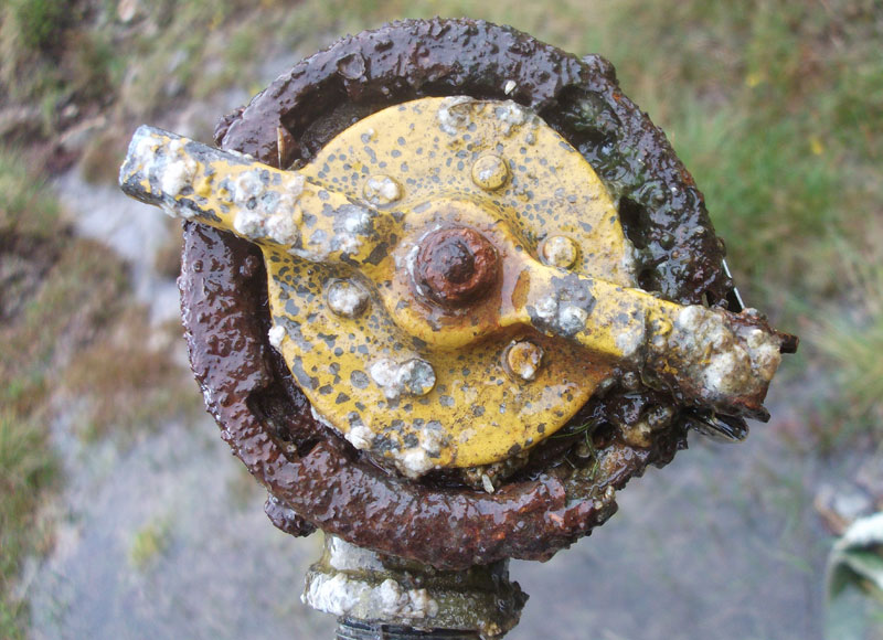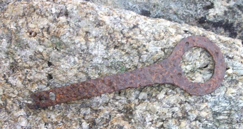 This rusty item may be one of the control levers in the centre throttle unit in the cockpit.
