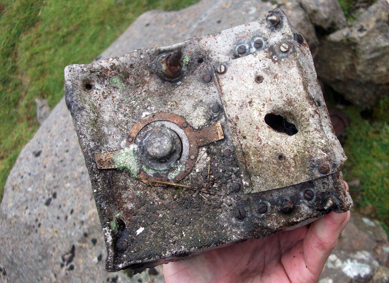 A couple of other unidentified pieces of equipment, the item above was hollow and had wires around the back and the item below looks to be stop-cock for some form of liquid inside the aircraft.