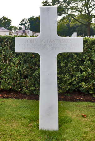 John Fantaskey is listed in the 1930 US census living in Williamsport, Lycoming County, Pennsylvania with parents John and Julia and siblings Margaret, Bernard, Edward, Rose, Gean and Donald. He is then listed in the 1940 US census with his father John Fantaskey but his mother would appear to have died as his father's wife is given as Edith Fantaskey (33), and with siblings Margaret, Bernard, Rosemarie, Dolores, Donald and Irene. John Jnr was working as a stockman in a factory in 1940 aged 21 years old. He enlisted for military service in Harrisburg, Pennsylvania in July 1942.