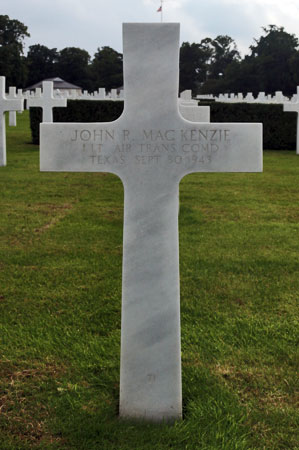Pilot - 1st Lt John R MacKenzie USAAF (O-512268), of Texas? Buried Madingley Cemetery, Cambridge, UK (E/3/71).