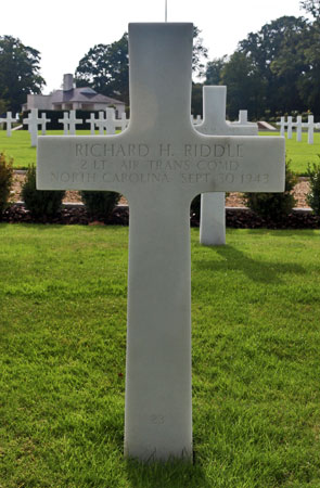 Co-Pilot - 2nd Lt Richard H Riddle USAAF (O-675625), of North Carolina. Buried Madingley Cemetery, Cambridge, UK (B/2/23).