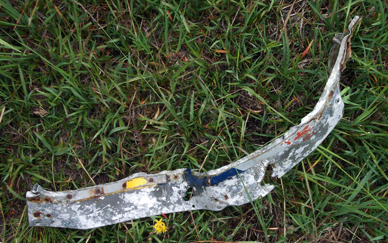 A small piece of the aircraft with a number of colours of paintwork visible.