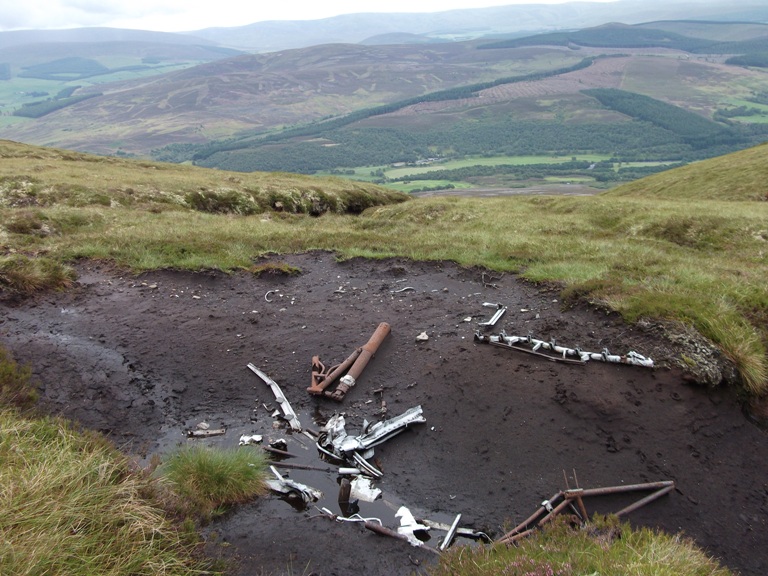 On 31st January 1943 this aircraft took off from Kinloss airfield at 10.35hrs to undertake a cross country training flight. At around 17.00hrs the aircraft flew into high ground close to the summit of Carn a’Ghillie Chearr; one of the larger peaks in the Hills of Cromdale, Moray while returning to base in poor weather. Three of the crew died at the scene of the crash, one died two days later and one other survived his injuries.