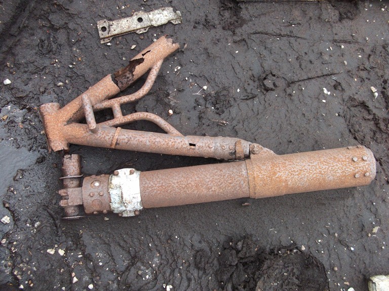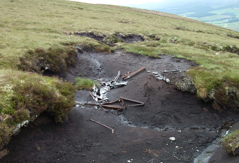 A large piece of main undercarriage. My footprints in the soft peat give some idea of scale.