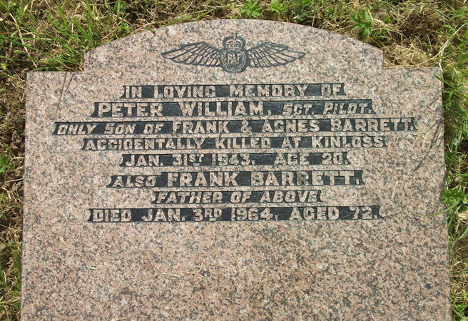 Pilot - Sgt Peter William Barrett RAFVR (1425570), aged 20, of Beverley, Yorkshire. Buried Beverley Church Cemetery, Yorkshire (A/K/43).