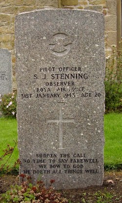 Observer - P/O Sidney John Stenning RAFVR (129370), aged 20, of North Kensington, London. Buried Kinloss Abbey, Moray (50/B).