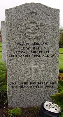 Air Sig - Sgt James Warren Bell RAF (1822719), aged 25, of Lockerbie, Dumphrieshire. Buried Kinloss Abbey, Moray.