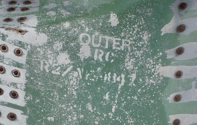 This section of stencilling was found on a large piece of what appears to be wing section. The "R2" refers to Rootes; the company who built this aircraft.