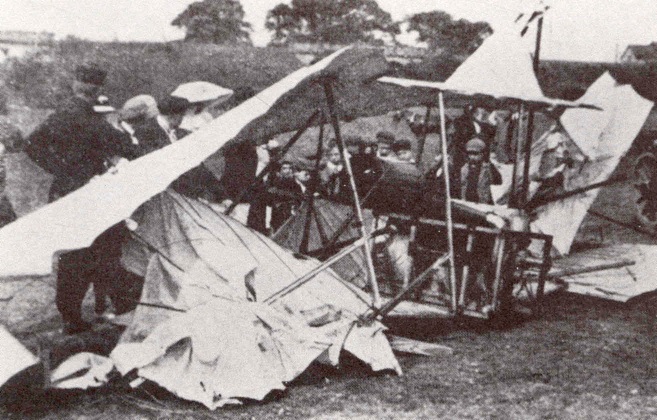 The damaged Bristol aeroplane at Spofforth.