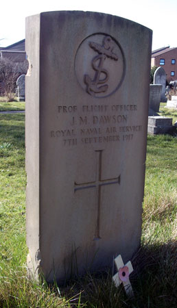 Pilot - Probationary F/O John Marshall Dawson RNAS, aged 20. Buried Coatham Churchyard, Redcar, Yorkshire.