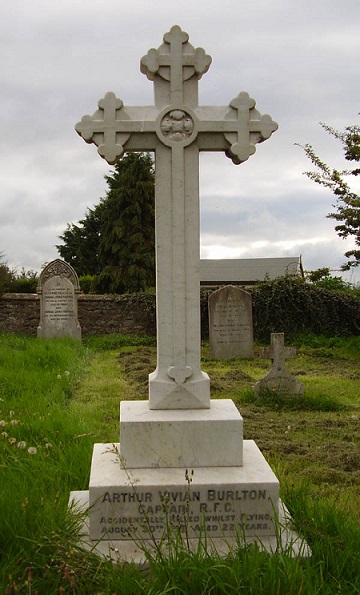 Pilot - Capt Arthur Vivian Burlton RFC, aged 22. Buried Catterick Cemetery, Yorkshire.