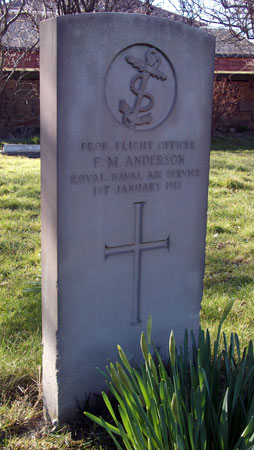 Pilot - Probationary F/O Francis Michael Anderson RNAS, aged 18. Died of injuries 1st January 1918. Buried Coatham Churchyard, Redcar, Yorkshire.