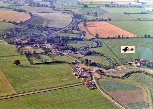 An aerial photograph of Normanby, looking north, taken in 1978 with the rough crash location marked.