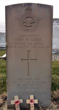 Pilot - 2Lt Roy Wesley Kerr RAF, aged 23. Buried Marske St.Germain Churchyard, Yorkshire.