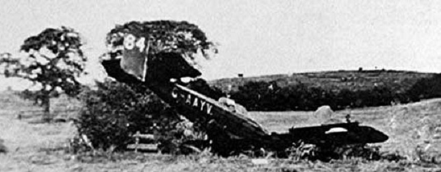 This aeroplane was one of two Avro Avian monoplanes with every other Avian being built as bi-planes. This one, G-AAYV and one other, G-AAYW, were both entered into the Kings Cup 1930 Air Race. G-AAYV carried the race number 84 and was entered into the race by John Davenport Siddeley, Chairman of the A.V.Roe and Co. It was to be piloted by an Avro test pilot. The race was held on 5th July 1930 with the start and finish being at Hanworth and a 750 mile route to be flown that took pilots as far north as Newcastle. Checkpoints in the north of England of Manchester, Leeds (Sherburn in Elmet), Newcastle (Cramlington) and Hull (Hedon) were to be flown to before the route went back toward Hanworth. G-AAYV was in the last four of the eighty eight aeroplanes to take off. It appears to have flown rather slowly though reached Sherburn in Elmet. I have been unable to locate a newspaper report that states what happened other than the pilot is listed as retiring from the race before reaching Cramlington. For whatever reason, this aeroplane appears to have made a forced landing in the East Cowton / Pepper Arden area but crashed into a fence and sustained damage. The photograph shown above must show the crash scene because the race number is on the tail of the aeroplane. Following this incident this Avian appears to have been rebuilt but as a standard Avro 616 Avian bi-plane variant.