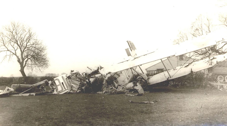 On 5th May 1930 B-Flight of 101 Squadron was to fly from Andover north to Catfoss aerodrome where a practice camp was to be held, this would include gunnery and bombing exercises off the Yorkshire coast. During the afternoon three Boulton and Paul Sidestrands set out from Andover for the flight north and they were seen to fly over Hull together at just before 17.00hrs. Unfortunately the weather around the East Riding of Yorkshire coastline was poor with low cloud or mist affecting visibility. All three crews appear to have struggled to locate where they were and they ended up on the coast in the Hornsea area and flying very low. At around 16.00hrs Sidestrand J9180 was seen over from the seafront at Hornsea and owing to how low it was flying it narrowly missed the roof of the Floral Hall, promenade flagstaff and the parish church. From Hornsea the crew took a roughly south-westerly course, overflew Southorpe at rooftop height and having reached the Hull water tower, near Great Hatfield, turned west following the road. The pilot appears to have attempted to make a forced landing near Great Hatfield but unfortunately, in narrowly missing a hedge the aeroplane struck the crossbar of a football goal on the village football field. It demolished the goal, struck a sixty foot high tree, then a second but (possibly) dead tree and dragged off the branches. This impact with the second tree damaged the right wing and caused the aeroplane to turn and struck the ground hard, nose first. It came to rest in a small field next to the Great Hatfield to Hornsea road opposite East Acres. The photograph above shows the damage and it is remarkable that the three crew escaped with relatively minor injuries given the state of the damage. The pilot was the most seriously injured and while he received head injuries they appear to have been only minor, he was taken into the nearby East Acres by the owner before heading elsewhere.