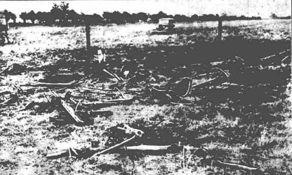 none could attempt to rescue the pilot because of the intense fire that resulted. In all probablity he was killed instantly in the crash. No accident report has yet been