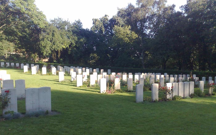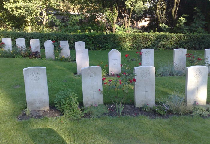 Poznan Old Garrison Cemetery, F/Lt Swain's grave is to the left of the rose in the front row.