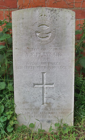 Anthony Playfair was born in India and was the son of Col. and Mrs Playfair. His family arrived in Vancouver Island when he child, he attended school at Shawnigan Lake. He left his home town in British Columbia three years before his death to take up a Commission in the RAF in England in May 1937 as Acting P/O on probation. He trained and gained his flynig Wings at 10 F.T.S. at Ternhill. He left a brother Geoffrey and he was the first British Columbian casualty of the War. He was buried in Finningley Churchyard on 8th September 1939.